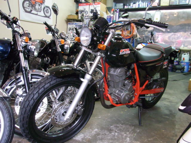 サイドカバー ゼッケンプレート→サイドカバーに交換 シート張替 赤パイピング入り
