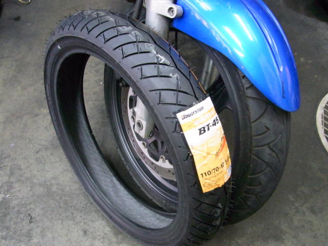 タイヤはフロント新品、リヤ7分山程度