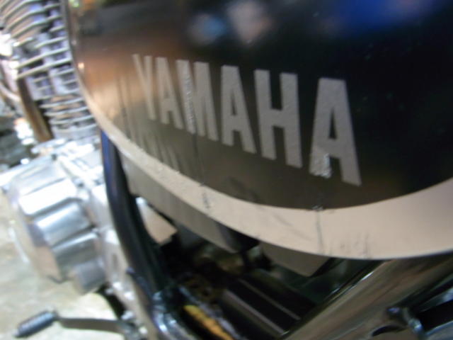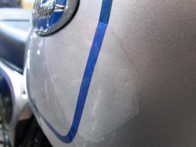 ガソリンタンク 左側 若干凹み 右側 大きな凹み補修箇所(パテ・リペイント)